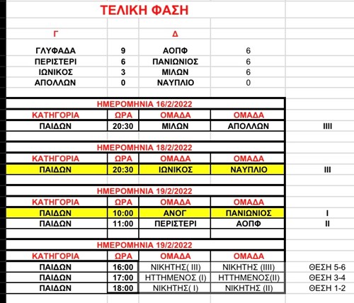 Οι ομάδες και το πρόγραμμα της τελικής φάσης που ολοκληρώνεται την Κυριακή 19 Φεβρουαρίου.