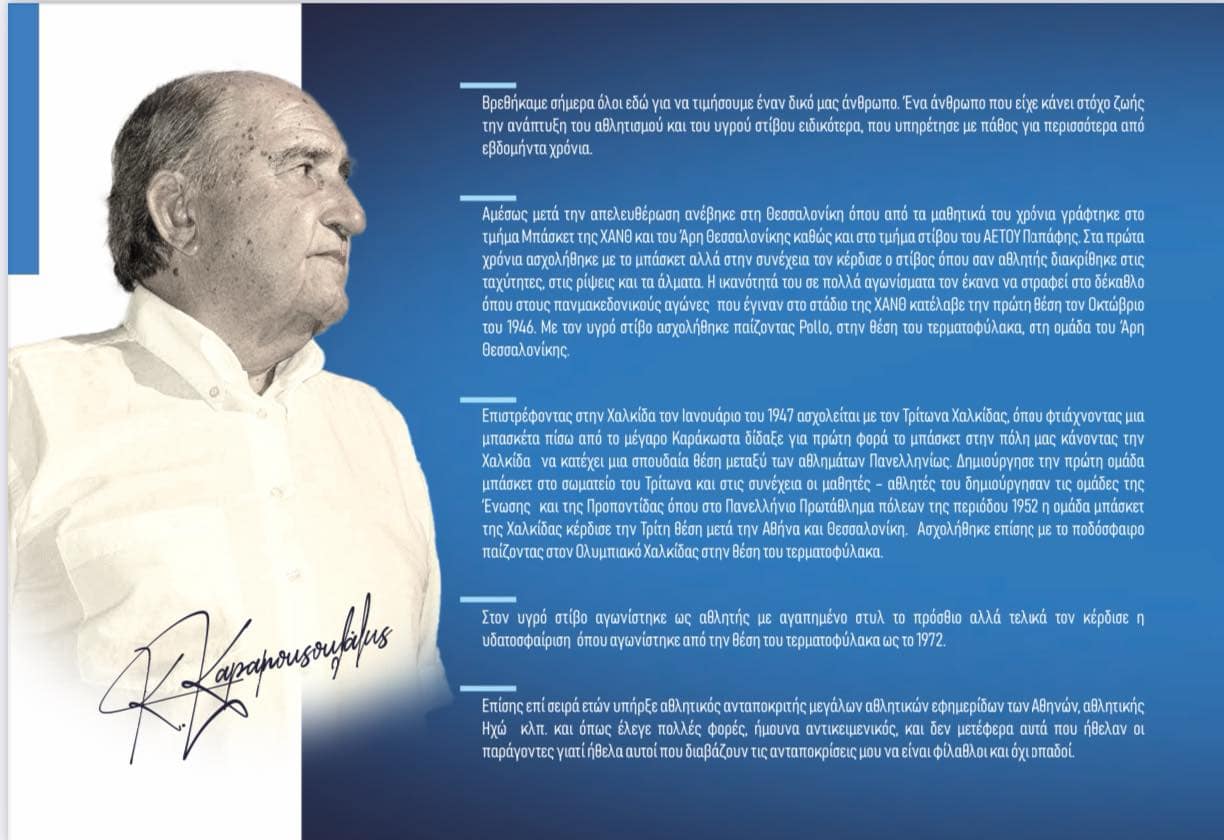 Παρακάτω παραθέτουμε λεπτομέρειες για την διοργάνωση καθώς και το βιογραφικό του Κώστα Καραμουσουλάκη.