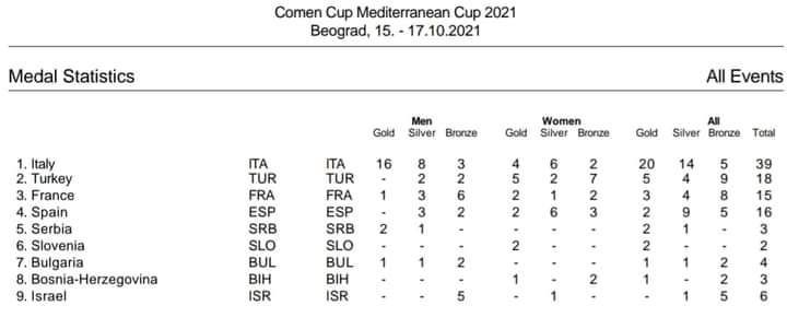 Με την συμμετοχή 9 χωρών, ολοκληρώθηκε το Μεσογειακό κύπελλο κολύμβησης (Comen Cup) στο Βελιγράδι. Μεγάλη πρωταγωνίστρια ήταν η Εθνική ομάδα της Ιταλίας, η οποία συγκέντρωσε συνολικά 39 μετάλλια (20 χρυσά, 14 ασημένια και 5 χάλκινα).