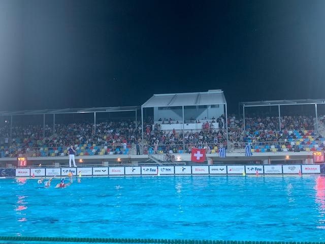Μια άνετη επικράτηση για την Εθνική μας ομάδα που νίκησε 21-3 την Ελβετία, και κατέλαβε την πρώτη θέση στον β’ όμιλο για το 1ο Παγκόσμιο Πρωτάθλημα Υδατοσφαίρισης, που συνεχίζεται στο Δημοτικό Κολυμβητήριο Νέας Πολιτείας.