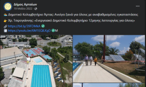 Η τελευταία αναφορά που έγινε δημοσίως από τα πλεόν “επίσημα χείλη”, ήταν στην προσωπική σελίδα του Δημάρχου Αρταίων, κ. Τσιρογιάννη, στο facebook στις 14/1/23, όπου χαρακτηριστικά ανέφερε: “Η εγκατάσταση υποσταθμού, ο εξαερισμός, το BMS, ο ΑΠΕ, οι παραγγελίες του εξοπλισμού από το εξωτερικό και η γραφειοκρατία μας καθυστέρησαν το έργο. Όμως εντός Μαρτίου το έργο θα ολοκληρωθεί και θα αποδοθεί στους δημότες.”