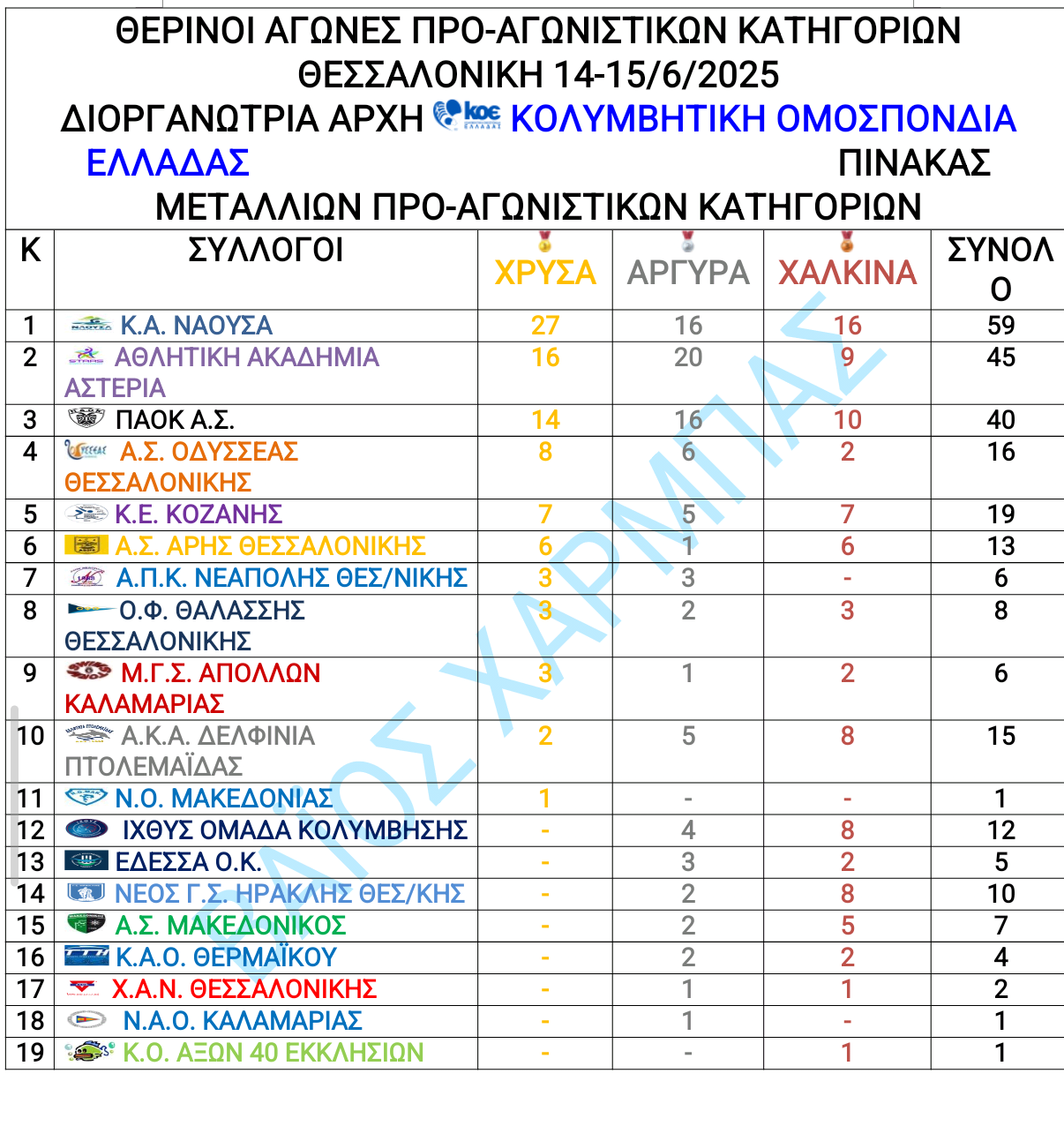 Με μια εντυπωσιακή εμφάνιση που άφησε άφωνους φίλους και αντιπάλους, η Κολυμβητική Ακαδημία «Νάουσα» (Κ.Α.Ν.) κατέκτησε την 1η θέση στους Θερινούς Αγώνες Προαγωνιστικών και Μίνι Κατηγοριών 2025 της ΠΕΚΚΔΜ, ολοκληρώνοντας με τον καλύτερο τρόπο τη φετινή αγωνιστική σεζόν.