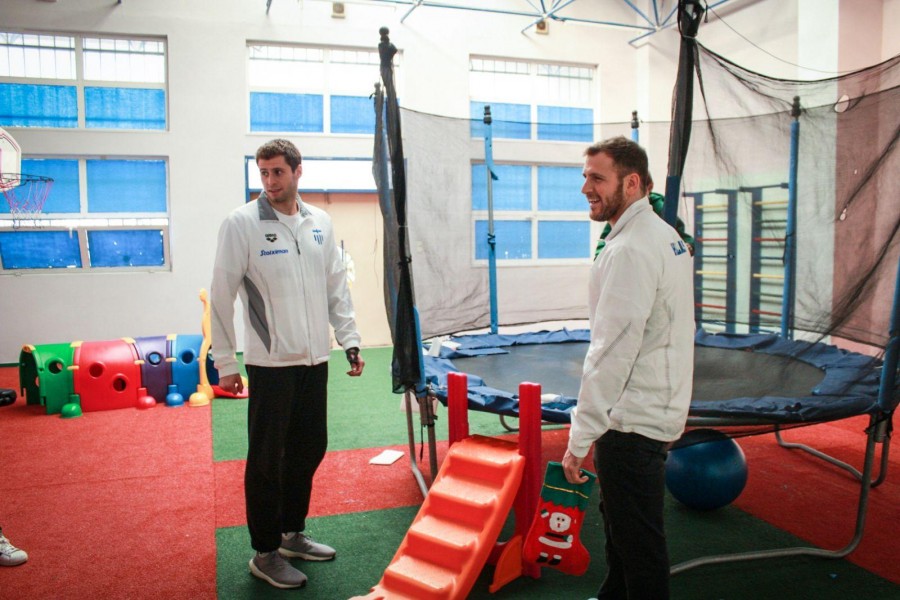 Ξεχωριστές στιγμές γεμάτες αγάπη και παιδικό αυθορμητισμό έζησαν ο Ομοσπονδιακός Τεχνικός της Εθνικής Υδατοσφαίρισης Ανδρών Θοδωρής Βλάχος, οι διεθνείς μας, Γιάννης Φουντούλης, Κωνσταντίνος Γενηδουνιάς, Γιώργος Δερβίσης, Μάνος Ζερδεβάς, Αλέξανδρος Παπαναστασίου και ο μάνατζερ της Γιώργος Μαργιούκλας, στο 1ο Ειδικό Δημοτικό Σχολείο Πειραιά.