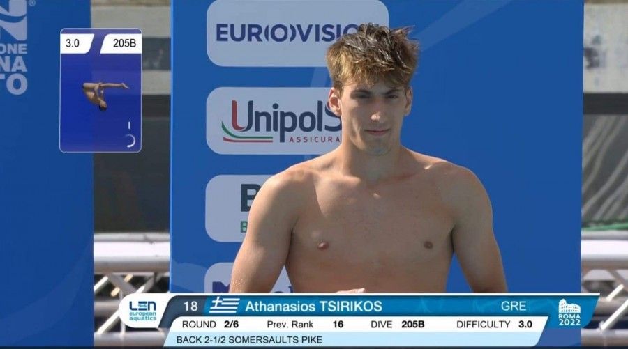 Πολύ καλή εμφάνιση για τον Θάνο Τσιρίκο στον προκριματικό των καταδύσεων από 10 μ. Σταθερά, το πρωί της Κυριακής (21/8), τελευταίας ημέρας του Ευρωπαϊκού πρωταθλήματος στη Ρώμη.
