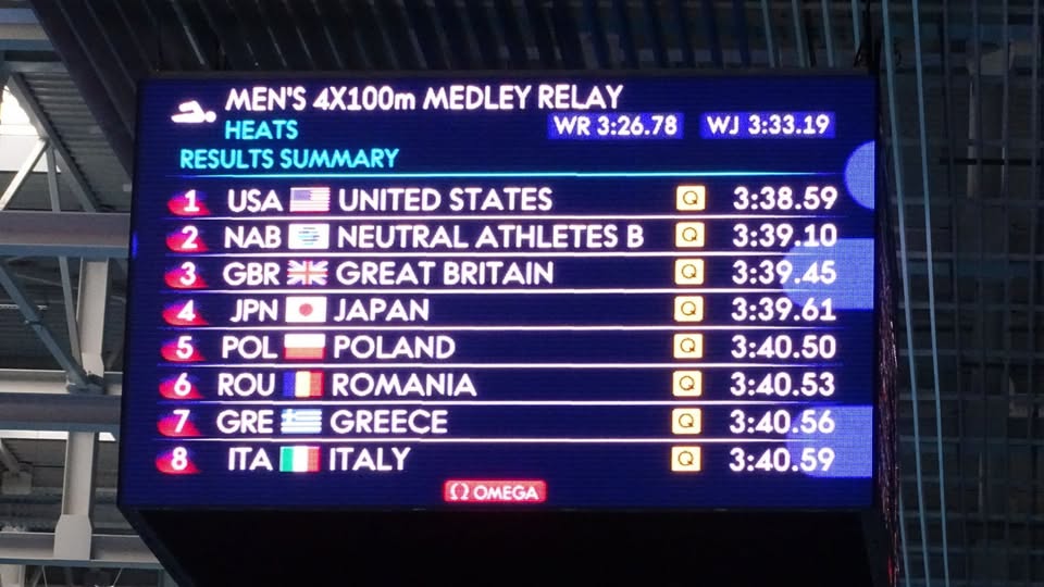 Η ελληνική τετράδα, αποτελούμενη από τους Νίκο Παπαθεοδώρου, Ευάγγελο Εφραίμ Ντούμα, Ιάσονα Ρούτουλα και Νίκο Σπαθαράκη κολύμπησε στην έκτη διαδρομή της τέταρτης προκριματικής σειράς και προκρίθηκε με την έβδομη καλύτερη επίδοση, 3:40.56, σε 38 συμμετοχές.
