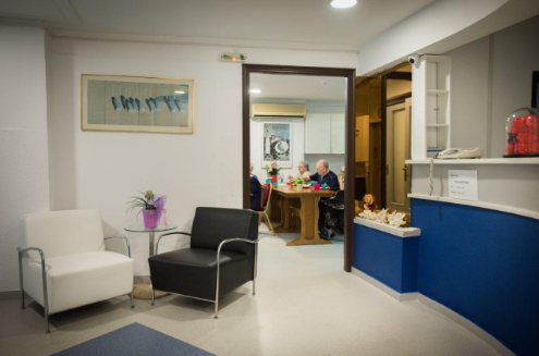 O χώρος υποδοχής αποτελείται από ευρύχωρη και κομψά διακοσμημένη τραπεζαρία με τραπεζάκια, αναπαυτικές καρέκλες αλλά και ευρύχωρους καναπέδες, όπου οι περιθαλπόμενοι μπορούν να συναντούν συγγενείς και φίλους, να περνούν ευχάριστα τον χρόνο τους με τους άλλους περιθαλπόμενους, να απολαμβάνουν τα γεύματα τους, να διαβάζουν, και βεβαίως να βλέπουν τηλεόραση σε νέας τεχνολογίας τηλεόραση που κοσμεί το κέντρο της αίθουσας.