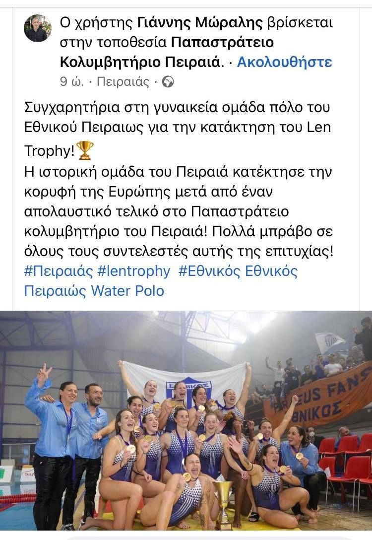 Αμέτρητα ήταν τα συγχαρητήρια προς τον Εθνικό για την κατάκτηση του Len Trophy.