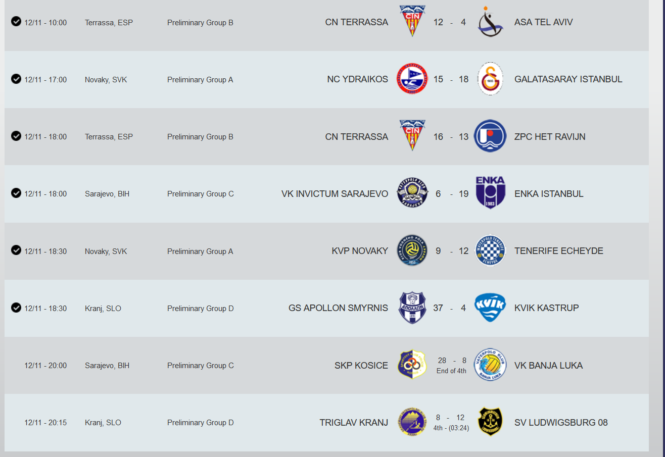 Η Τενερίφη νίκησε με 12-9 τη Νοβάκι, έφτασε τους 6 βαθμούς, όσους έχει και η Γαλατάσαράι και είναι οι δύο ομάδες που εξασφάλισαν το εισιτήριο της πρόκρισης.