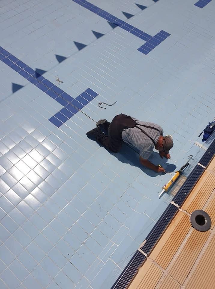 Οι εργασίες καθαρισμού και αντικατάστασης ειδικής σιλικόνης πισίνας στους αρμούς διαστολής συνεχίστηκαν και ολοκληρώθηκαν σήμερα.