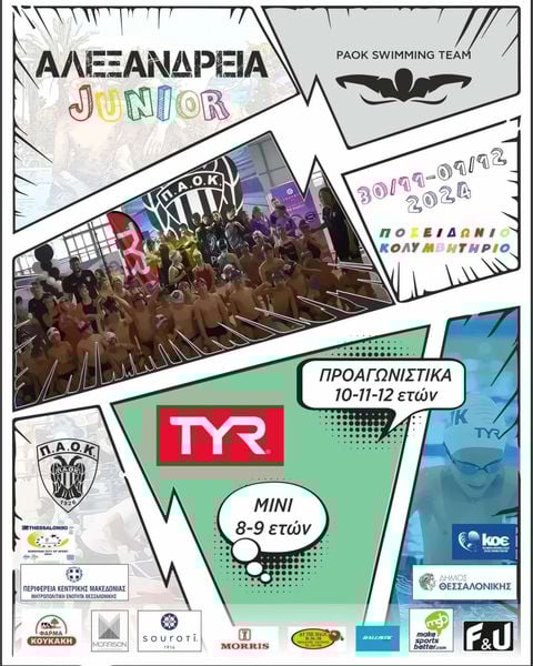Ο Α.Σ ΠΑΟΚ/PAOK athletic και η TYR Hellas είναι έτοιμοι να υποδεχτούν στο Ποσειδώνιο κολυμβητήριο στις 30/11-01/12 τα 24 σωματεία με τους 750 αθλητές/ριες που θα συμμετάσχουν στα ΑΛΕΞΑΝΔΡΕΙΑ Junior 2024.