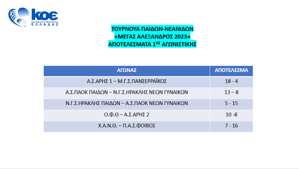 ΑΠΟΤΕΛΕΣΜΑΤΑ 1ΗΣ ΑΓΩΝΙΣΤΙΚΗΣ
