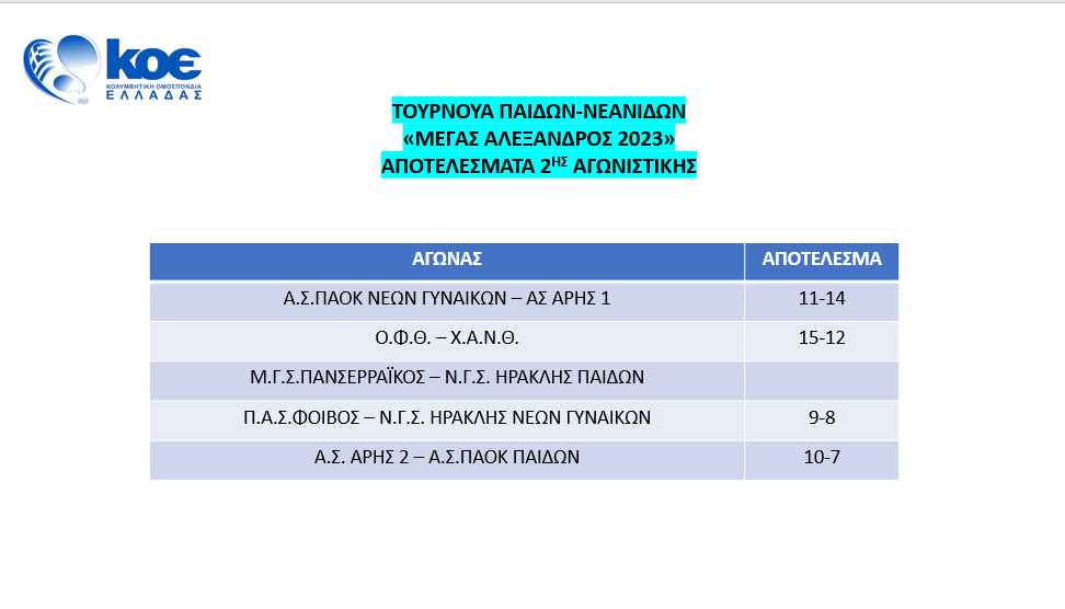 ΑΠΟΤΕΛΕΣΜΑΤΑ 2Ης ΑΓΩΝΙΣΤΙΚΗΣ