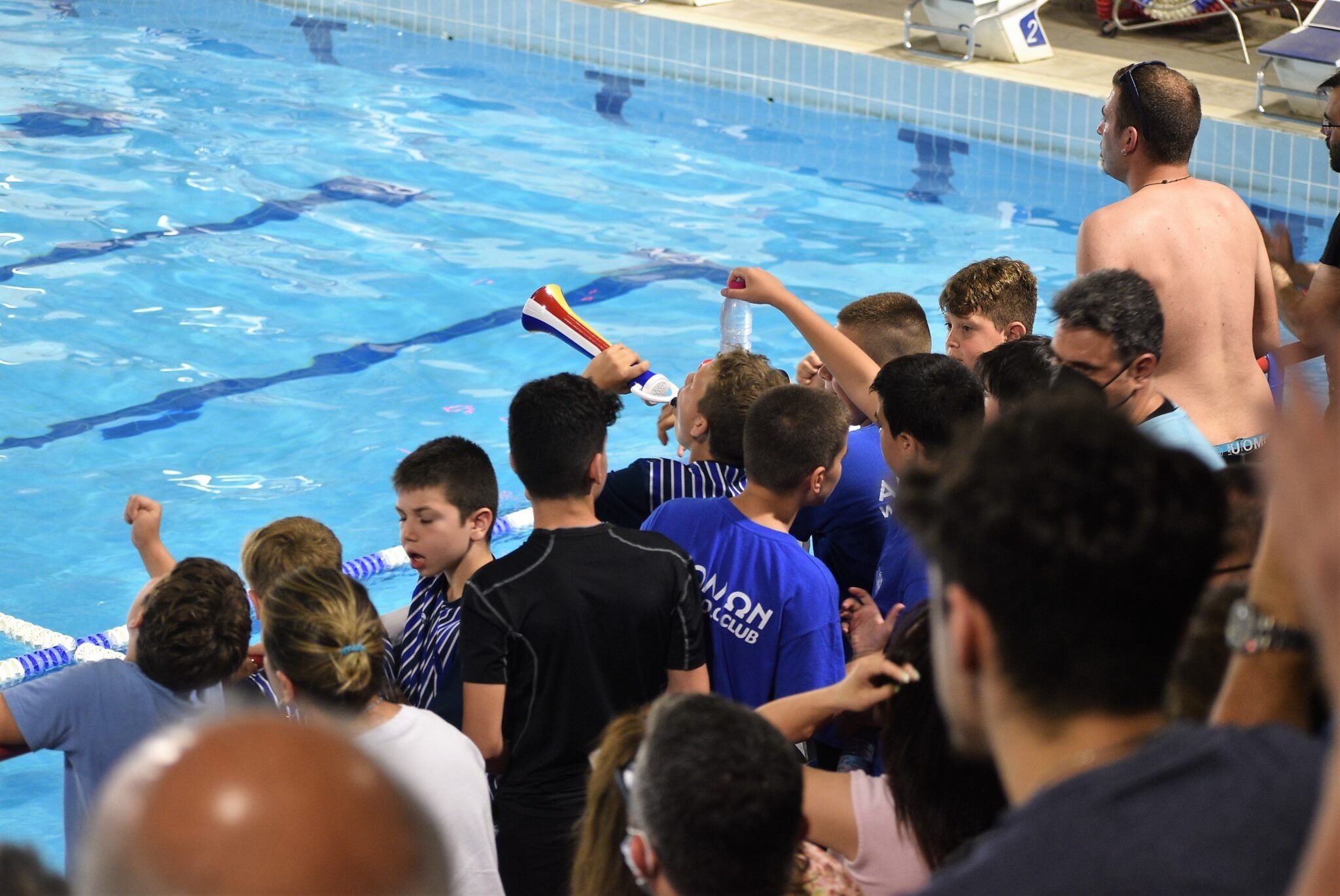 Τα δεκάδες παιδιά των ακαδημιών του τμήματος Υδατοσφαίρισης, που μαζί με τους υπόλοιπους Απολλωνιστές, γέμιζαν ασφυκτικά το Σεράφειο κολυμβητήριο στους αγώνες της ανδρικής ομάδας.