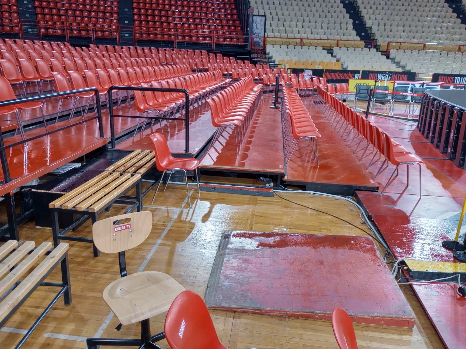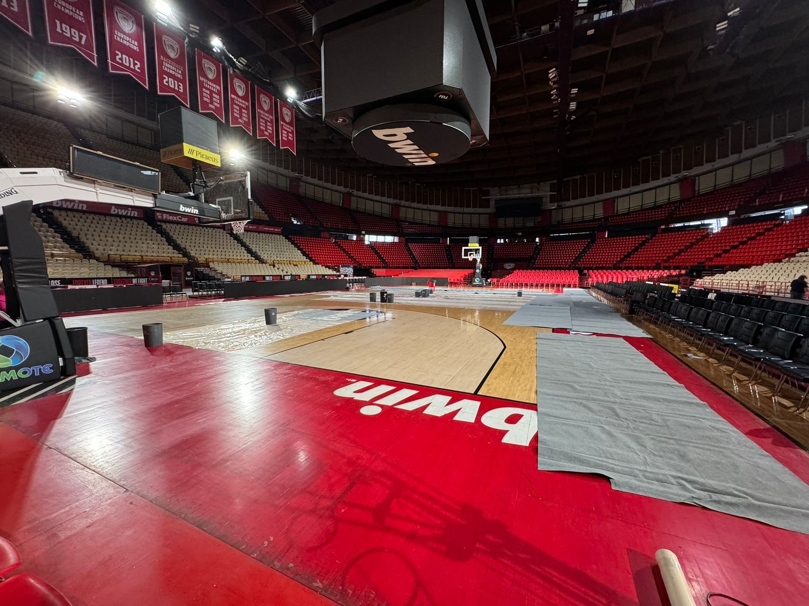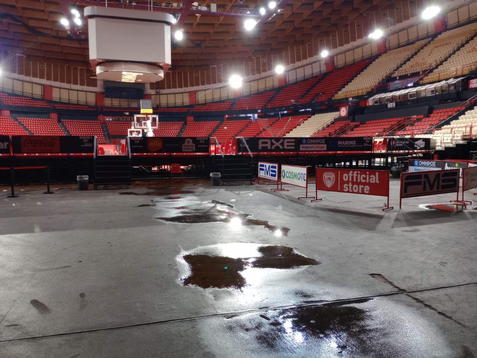 Το παρκέ και το Cube που είναι περιουσία των "ερυθρολεύκων" έχουν τεράστιο πρόβλημα. Επίσης έγιναν μεγάλες ζημιές και στο γυμναστήριο της ομάδας με τα νέα υπερσύγχρονα μηχανήματα.