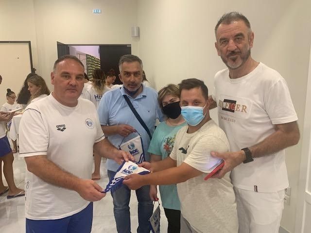 Εκ μέρους της Κολυμβητικής Ομοσπονδίας Ελλάδας, ο υπεύθυνος των τμημάτων υποδομής της γυναικείας υδατοσφαίρισης Δημήτρης Κύρκος, ευχαρίστησε για την ξεχωριστή τιμή, και χάρισε αναμνηστικά στα παιδιά και στους συνοδούς τους.