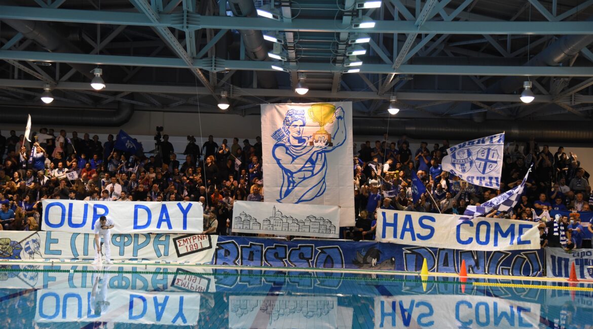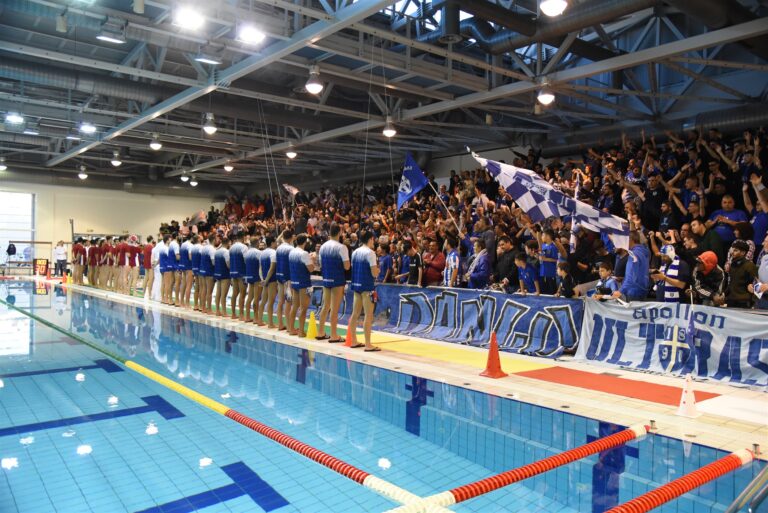 Κατέκλυσαν κάθε γωνιά του Σεράφειου κι έδωσαν τη δική τους σπουδαία παράσταση, παράλληλα με εκείνη των παικτών μέσα στο νερό. Τραγουδούσαν ασταμάτητα από την αρχή μέχρι και το τέλος αποτελώντας τον 8ο παίκτη του Απόλλωνα Σμύρνης, που έφτασε στη σπουδαία νίκη με σκορ 12-11 παίρνοντας μικρό προβάδισμα για την ευρωπαϊκή κούπα εν όψει του 2ου Τελικού στις 29 του Απρίλη στην Τεράσα. Εκεί όπου θα ταξιδέψουν 50 Απολλωνιστές οπαδοί για να δώσουν, όπως και χθες, τον δικό τους «μαγικό» τόνο στην εξέδρα και να σπρώξουν τους «κυανόλευκους» προς το τρόπαιο!