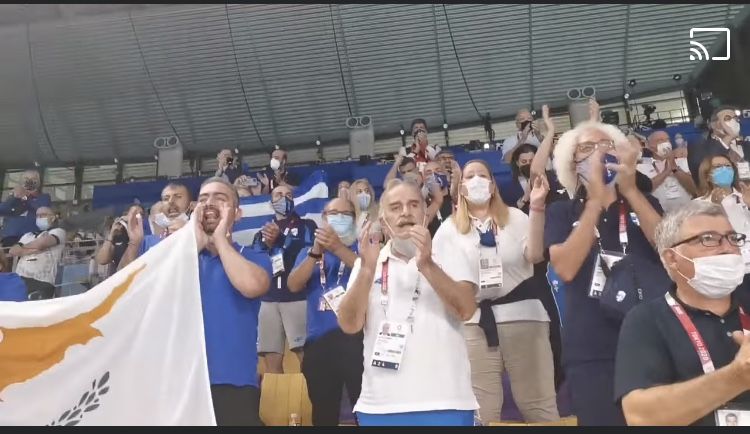 Μετά το τέλος του αγώνα, η «Ελληνική» εξέδρα του κολυμβητηρίου πανηγύρισε, παρά την ήττα, την εκπληκτική αυτή πορεία.