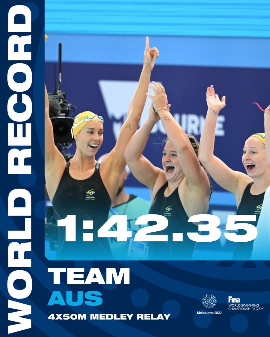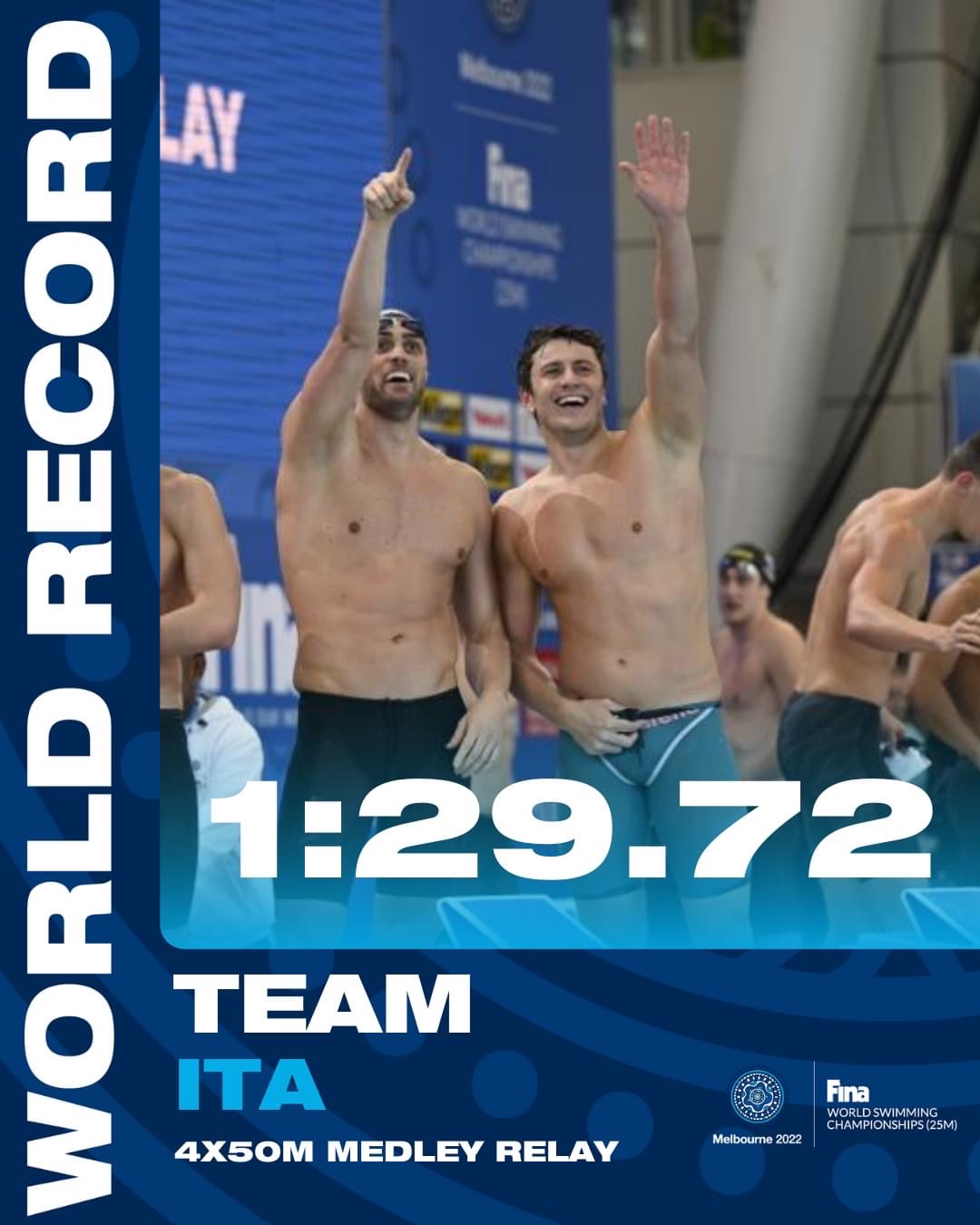 Παγκόσμια ρεκόρ σημείωσαν επίσης οι εθνικές ομάδες της Αυστραλίας και της Ιταλίας στα 4Χ50 μικτής ομαδικής γυναικών και ανδρών αντίστοιχα με 1.42.35 (προηγούμενο των ΗΠΑ με 1.42.38) και 1.29.72 (προηγούμενο της Ιταλίας επίσης με 1.30.14.
