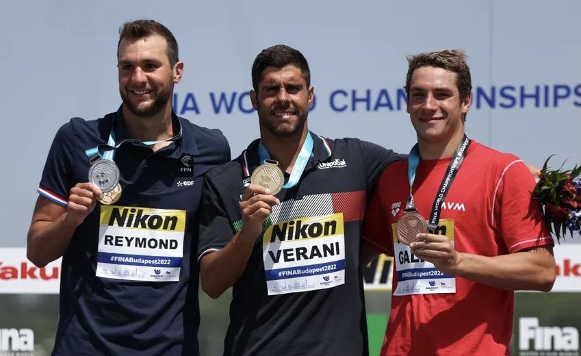 Ο Ιταλός Ντάριο Βεράνι με 5 ώρες 02.21.50 ήταν ο μεγάλος νικητής στα 25 χιλιόμετρα μαραθώνιας κολύμβησης του παγκόσμιου πρωταθλήματος που έγινε στην Ουγγαρία. Ο Ιταλός κέρδισε μόλις για 1,5 δευτερόλεπτο τον Γάλλο Αλεξ Ραϊμόν (5.02.22.70) σε μια τεράστια απόσταση!!!
