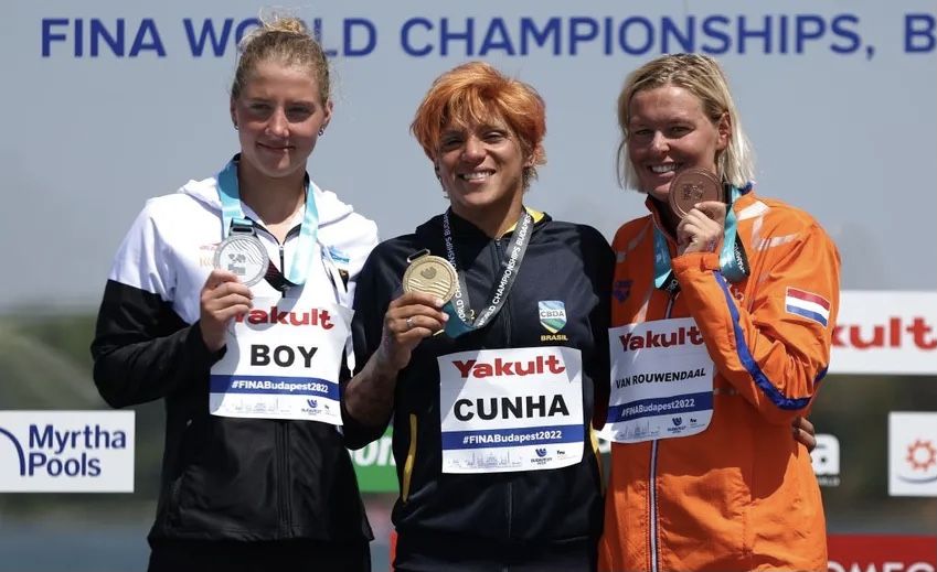 Στις γυναίκες τρεις κολυμβήτριες έπεσαν μαζί πάνω στον τερματισμό, με νικήτρια την Βραζιλιάνα Άννα - Μαρτσέλα Κούνια που κάλυψε την απόσταση σε 5 ώρες 24.15.00. Δεύτερη ήταν η Γερμανίδα Μπόϊ (5.24.15.20) και Τρίτη η Βαν Ρούβενταλ (5.24.15.30). Η κούρσα ΕΔΩ.