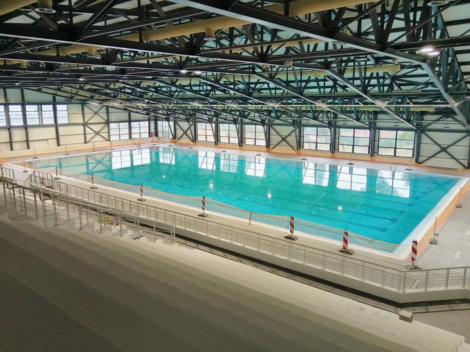 Αποπεράτωση του κτιριακού κελύφους και κατασκευή μεταλλικής στέγης του χώρου δεξαμενής εκμάθησης.