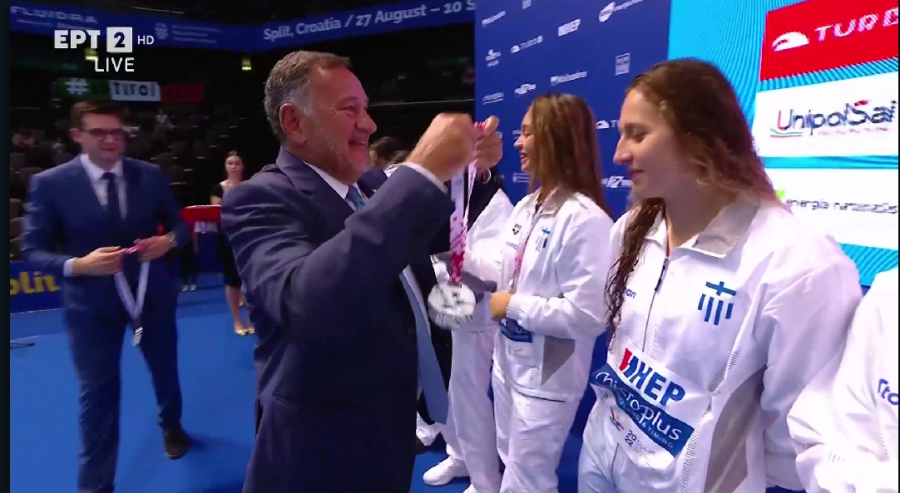 Την απονομή στις διεθνείς, έκανε ο πρόεδρος της Ελληνικής Ολυμπιακής Επιτροπής και μέλος της Διεθνούς Ολυμπιακής Επιτροπής, Σπύρος Καπράλος.