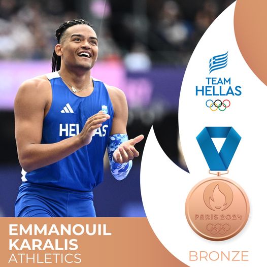 Ιπτάμενος Εμμανουήλ Καραλής, πραγματοποίησε εντυπωσιακή εμφάνιση στον τελικό του άλματος επί κοντώ, καταφέρνοντας να κατακτήσει το χάλκινο μετάλλιο στους Ολυμπιακούς Αγώνες, στο Παρίσι, με επίδοση τα 5 μέτρα και 90 εκατοστά.