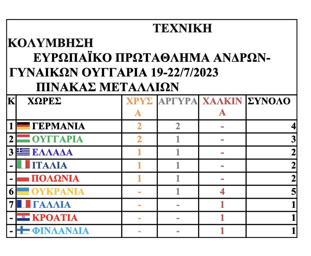Ένα χρυσό και μάλιστα με Πανελλήνιο ρεκόρ από την Εθνική ομάδα σκυταλοδρομίας 4Χ50 επιφάνεια μικτή και ένα αργυρό στα 400 επιφάνειας ήταν ο απολογισμός για τα ελληνικά χρώματα στην πρεμιέρα του Ευρωπαϊκού πρωταθλήματος Ανδρών-Γυναικών, το οποίο φιλοξενείται στην ουγγρική πόλη Γκόντολο
