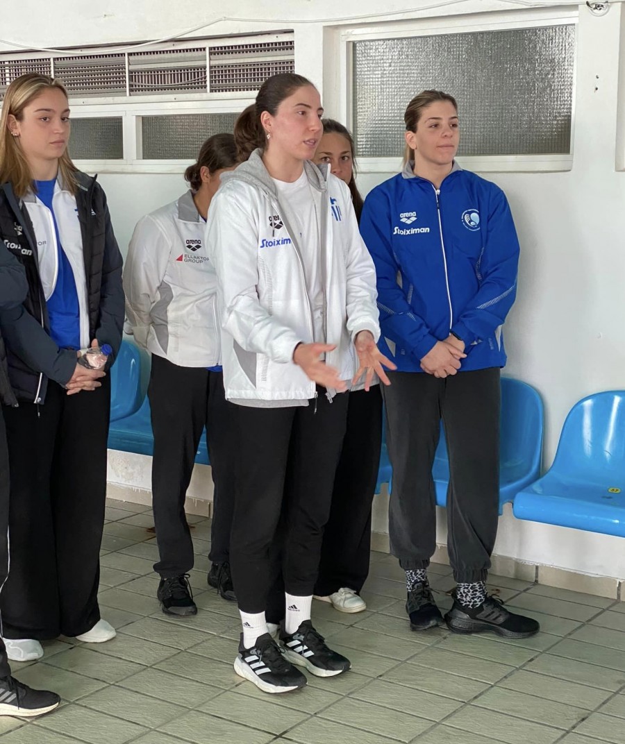 Ένα από αυτά αποτέλεσε η συνάντηση με τους αθλητές/τριες της αγωνιστικής και προαγωνιστικής ομάδας του Κολυμβητικού Ομίλου Καρπενησίου. Σε μια ωραία συζήτηση τα παιδιά του τοπικού ομίλου είχαν την ευκαιρία να γνωρίσουν τις διεθνείς πολίστριες μαθαίνοντας πολλά πράγματα ενώ ιδιαίτερο ενδιαφέρον είχαν οι απορίες που εξέφρασαν οι μικροί αθλητές προς τις διεθνείς. Στο τέλος, ευχήθηκαν κάθε επιτυχία στις επικείμενες διοργανώσεις που πρόκειται να συμμετάσχουν.