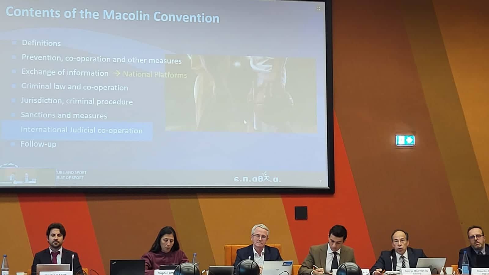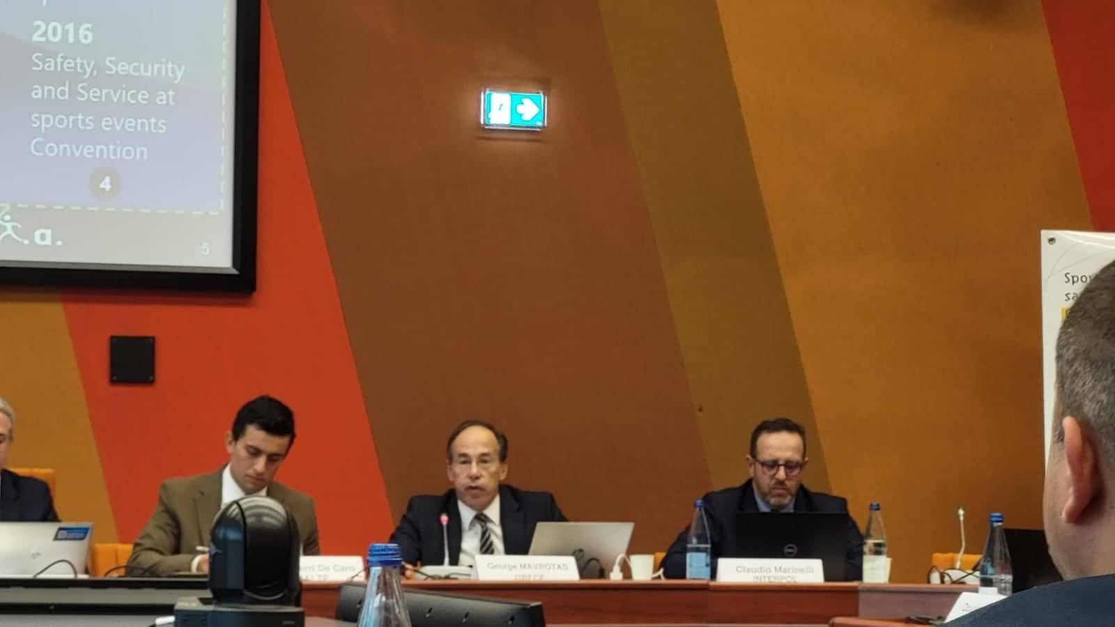 Παρόντες στην πρώτη συνάντηση, που διοργάνωσε το Συμβούλιο της Ευρώπης μαζί με την Interpol στο Στρασβούργο, o γγΑ και πρόεδρος της ΕΠΑΘΛΑ Γιώργος Μαυρωτάς (με την ιδιότητα του και ως πρόεδρος της Επιτροπής Παρακολούθησης της Σύμβασης Macolin) και ο αθλητικός εισαγγελέας Κωνσταντίνος Σπυρόπουλος.