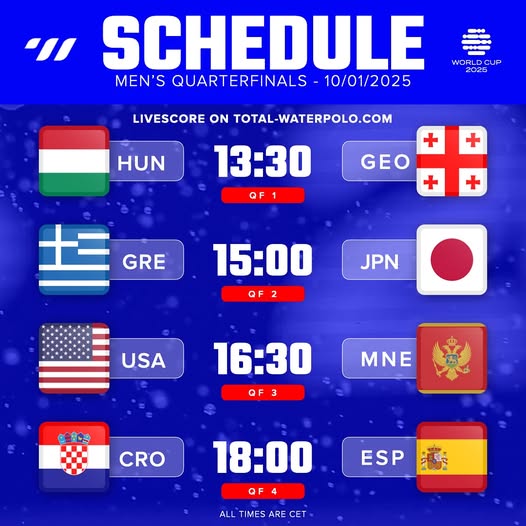 Έτοιμη για τετράδα... Την προσπάθειά της στο World Cup συνεχίζει η Εθνική μας ομάδα Υδατοσφαίρισης των Ανδρών, η οποία στα προημιτελικά του θεσμού που λαμβάνει χώρα στο Οτοπένι της Ρουμανίας καλείται να αντιμετωπίσει την Ιαπωνία το απόγευμα της Παρασκευής (10/1, 16:00 ώρα Ελλάδας).