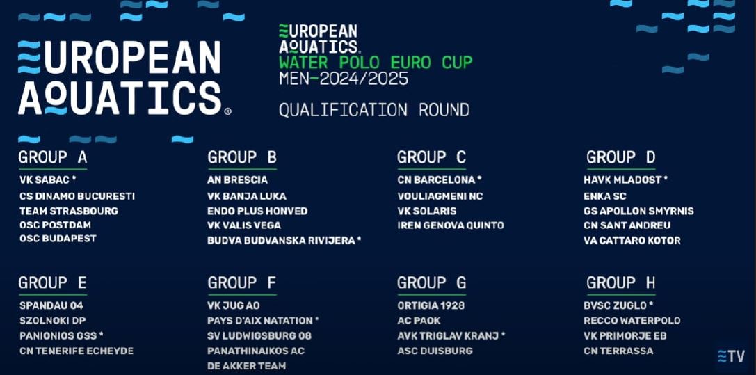 Οι ελληνικές ομάδες υδατοσφαίρισης του ΠΑΟΚ, Παναθηναϊκού, Απόλλωνα Σμύρνης, Πανιωνίου και ΝΟ Βουλιαγμένης ρίχνονται στη μάχη του LEN EuroCup, εκπροσωπώντας τη χώρα μας στη διοργάνωση. Με πρώτο τον Παναθηναϊκό, ο οποίος αγωνίζεται αύριο με αντίπαλο την Λούντβιγκσμποργκ στις 19:00 (ώρα Ελλάδος).