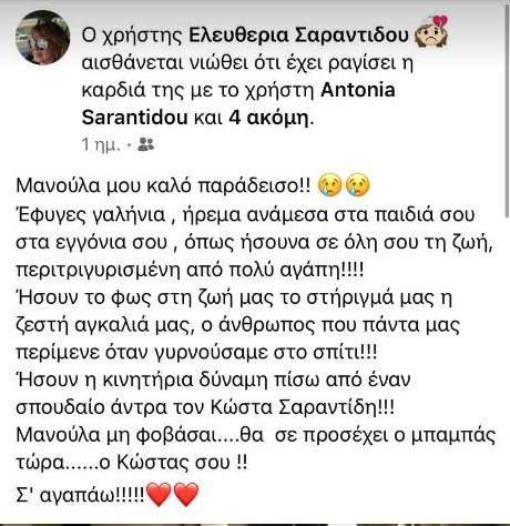 Η ανάρτηση της Ελευθερίας Σαραντίδη