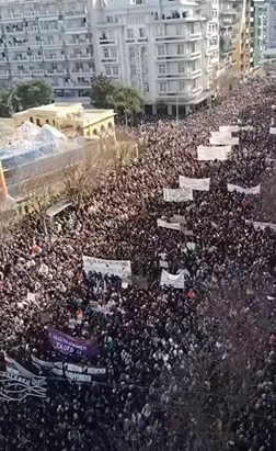 Μαζική συγκέντρωση και πορεία στη μνήμη των θυμάτων της σιδηροδρομικής τραγωδίας των Τεμπών, πραγματοποίησαν συνδικάτα εργαζομένων, φοιτητές, μαθητές και πολίτες.