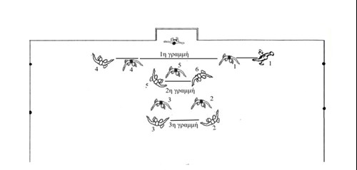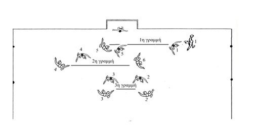 Μετακινήσεις δύο παικτών της πρώτης γραμμής επίθεσης. Σχηματισμός τριών γραμμών επίθεσης